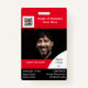 Um design em vermelho, branco e preto com modelos simples, mas flagrante, para o seu logotipo e código de barras; uma foto do seu funcionário; dados relativos à sua empresa e à data de emprego, grupo sanguíneo e data de validade do cartão. Personalize a modelo para atender às suas necessidades e altere a cor de fundo para qualquer uma de suas opções pessoais.