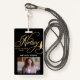 Crachá de negócios elegante e moderno para agente assinante de empréstimo notário com script de caligrafia manuscrito de folha falsa ''notary'' em fundo preto. Personalize com seus detalhes.
