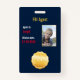 Fundo azul escuro com selo dourado e texto dourado, branco e vermelho. Adicione a sua própria foto ou a dos seus convidados.