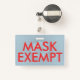 Exiba este crachá somente se estiver legitimamente isento de vestir uma máscara ou outro revestimento facial de acordo com as leis e diretrizes locais. Vestir uma máscara onde e quando você for capaz ajuda a retardar a propagação e salvar vidas.
