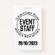 Um crachá para um Membro do Funcionarios de Eventos. Altere o texto para seus detalhes. Crachá de Funcionarios. Crachá de Funcionarios de evento para um pátio ou clipe. Crachá do Funcionarios de eventos oficial. Texto preto sobre fundo branco.