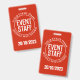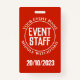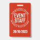 Um crachá para um Membro do Funcionarios de Eventos. Altere o texto para seus detalhes. Crachá de Funcionarios. Crachá de Funcionarios de evento para um pátio ou clipe. Crachá do Funcionarios de eventos oficial. Texto branco sobre fundo vermelho.