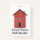 Ilustração gráfica vetorial (para impressão de alta qualidade) de uma escola vermelha com o (personalizável) texto School Name e Hall Monitor.