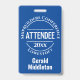 Um crachá para um Participante da Conferência. Altere o texto para seus detalhes. Crachá do Participante da Conferência. Crachá oficial do participante. Texto branco sobre fundo azul.