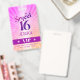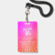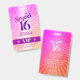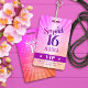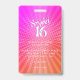 “Feliz Aniversário de 16 Anos”. Adicione um pouco de diversão extra à festa de aniversário de 16 anos da sua filha favorita sempre que distribuir esses crachás comemorativos VIP de aniversário especiais! Uma tipografia moderna, ousada e divertida em rosa e roxo escuros sobre um fundo de raios em gradiente laranja claro e rosa ombre com pontos brancos. No verso, um gráfico branco de "sweet 16" sobre um fundo pop em rosa escuro e laranja brilhante. Personalize o texto personalizado com o nome da sua filha na frente e a data da festa, local e/ou outras informações no verso. Garantido para adicionar diversão elegante à celebração de aniversário desse marco especial! Convites, adesivos, pratos, guardanapos e outros presentes de aniversário correspondentes também estão disponíveis nesta coleção única e especial.