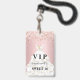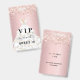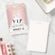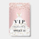 Um emblema moderno, elegante e glamoroso para uma festa de 16 anos. Um fundo degradê rosa bege com glitter dourado rosa. Com o texto: VIP. Personalize e adicione nome, idade, data. O nome é escrito com uma fonte moderna e personalizada com floreios.