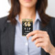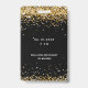 Um crachá VIP moderno, na moda e glamouroso para uma festa de aniversário Doce 16. Um fundo preto decorado com confete de ouro falso. Com o texto: VIP. Personalize e adicione o nome e os detalhes da festa.