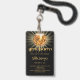 Um crachá moderno, na moda e glamouroso para um doce 16, festa de aniversário. Concurso de aniversário de ouro negro do partido Disco. Um fundo preto dedecorado com uma bola de disco ouro. Texto: Partido do Vamos! Personalize e adicione um nome e detalhes da parte. O nome é escrito com um script de estilo manuscrito. Traseira: sem design ou cor (menos caro)