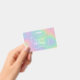 Cores de arco-íris onduladas com efeito holográfico falso, colorido e moderno. Metal falso prateado exibe uma moldura em torno do seu Nome e Texto em letras de fonte branca moderna.