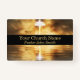 A beautiful gold cross with a water reflection ID Badge: Add Your Church Name/Title for Pastor, Priest, Deacon, and other Clergy/Greeters. Reach out for matching products and assistance with customization.