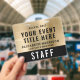 Create a polished, professional presentation with these elegant custom event access pass badges, designed to combine clear identification, branding, and modern QR functionality. Featuring a bold, easy-to-read layout, this badge highlights your event title and staff or VIP name and their details for instant recognition. The premium black and brushed gold background adds an upscale touch -- perfect for conferences, corporate events, festivals, and productions. The back includes a large scannable QR code, making it ideal for check-ins, schedules, digital tickets, credentials, or secure access control.