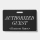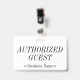 Este respeitável design de crachá apresenta a mensagem "CONVIDADO AUTORIZADO", e um nome de empresa personalizável ou outra mensagem personalizada. Um crachá como este poderia ser usado para indicar que uma pessoa é um convidado conhecido e autorizado ou visitante em uma empresa ou local de trabalho. [~Z0000307]