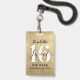 Uma maneira inteligente de convidar seus convidados para a festa de aniversário dos seus 16 anos. Esses convites personalizados em formato de crachá VIP de 16 anos dourado são certeiros para impressionar seus convidados. O design apresenta um efeito de folha dourada com uma fonte moderna de script escrita à mão. Personalize facilmente o verso deste modelo para a festa de aniversário dos seus dezesseis anos. Os designs são ilustrações/gráficos impressos planos. Nenhuma folha metálica é realmente utilizada. Disponível também em dourado rosé. Criado especialmente para você pela Blackberry Boulevard.