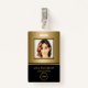 Negócios modernos de fotografia com um fundo e logotipo dourados. Informações adicionais podem ser adicionadas à parte traseira deste crachá de ID de negócio