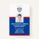 crachá durável, de alta qualidade, de identificação personalizada de empresa e hospital. Na parte frontal, adicione facilmente o logotipo da sua empresa (ou exclua), a foto do funcionário, o nome, o título e as informações de ID. No verso, adicione linhas adicionais de texto personalizado, ou seja, endereço comercial, email, número de telefone, local de construção, etc. Adicione também um código de bar, código QR ou logotipo da empresa - ou exclua. O crachá atual oferece um esquema de cores vermelho e azul que pode ser facilmente alterado para corresponder às cores da sua empresa.