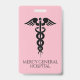 Um fundo cor-de-rosa de dois tons e uma fonte elegante adicionam profissionalismo e facilidade de leitura a esse crachá de nome. Personalize com nome, cargo/credenciais e departamento. O tipo de letra e as cores da fonte podem ser modificados conforme desejado. Design inverso mostra nome do hospital e símbolo caduceus. Excelente para profissionais de saúde em hospitais, consultórios médicos, clínicas ambulantes e centros médicos! Design © W.H. Sim, Todos os Direitos Reservados. Mais informações em zazzle.com/expressionsoccasions