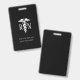 Deixe seus pacientes saberem quem está cuidando deles usando este Crachá de Identificação Personalizado de Enfermeira Registrada Caduceu Médico. É um design moderno com fundo preto personalizável em ambos os lados. Um símbolo de caduceu branco está no centro com "EN" em letras brancas. Personalizado com seu nome e cargo e local de trabalho. Você pode personalizar o texto ou excluir clicando na opção de personalizar o modelo