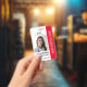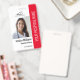 Personalize facilmente este crachá de identificação fotográfico profissional vermelho para funcionários médicos com seus detalhes personalizados.