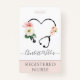 Uma enfermeira elegante, cuidadora ou assistente de saúde doméstica com estetoscópio floral. Contacte as informações no verso. Você pode adicionar seu anexo se quiser em metal, jardim ou retrátil. Adicione seu próprio título.