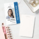 Personalize facilmente este crachá azul de identificação de foto de funcionário médico profissional com seus detalhes personalizados.