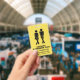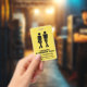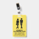O banheiro estudantil do professor de escola humorístico passa crachá feito em amarelo com estêncil preto como figuras de uma menina e um garoto urgente. Personalize os campos de texto para ler o que você deseja.