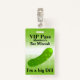 Divertimento todo o crachá acessório do partido da ocasião feito em um teste padrão verde e branco da reticulação do ponto, com gráficos de uma salmoura de aneto grande, no meio. O texto feito sob encomenda preto está pronto para personalizar para seu evento. Excelente para festas de aniversário, bar Mitzvahs, despedida de solteiro e mais.