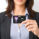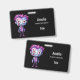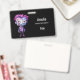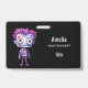Dê um crachá com uma ilustração fofa. Monstro de Frankenstein com cabelo rosa e roxo e um casaco e gravata.