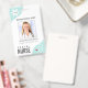 Crachá de foto de funcionário médico com um estetoscópio e um desenho de coração. O exemplo mostra o título de ENFERMEIRA DE VIAGEM, mas pode ser editado para qualquer cargo de funcionário. Inclua um logotipo ou exclua a imagem de exemplo. ALTERAÇÃO DE COR DE FUNDO: A cor de fundo verde menta pode ser alterada clicando na aba PERSONALIZAR MAIS. Entre em contato com o designer se desejar que este design seja modificado ou precise de ajuda com a cor.