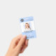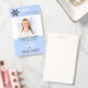 Crachá de foto de funcionário médico com estetoscópio, coração e batimento cardíaco. O exemplo mostra o título de ENFERMEIRA DE VIAGEM, mas pode ser editado para qualquer cargo de funcionário. Inclua um logotipo ou exclua a imagem de exemplo. ALTERAÇÃO DE COR DE FUNDO: A cor de fundo azul clara pode ser alterada clicando na aba PERSONALIZAR MAIS.