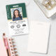 Crie uma aparência profissional com este crachá Notário Público clássico. Um modelo de na moda personalizado com sua foto, seu nome e detalhes comerciais, além de espaço para até três símbolos de acreditação ou seu logotipo. A parte traseira inclui informações adicionais e um código de barras ou código QR. Perfeito para um Notário Público, Agente de Assinatura de Empréstimo, Agente de Entrega de Confiança Notária Certificada, CNTDA, Notário Móvel, Apostille ou outra profissão jurídica. Cores impressas: verde muito escuro, branco e dourado. Compre a coleção on-line para obter ideias e suprimentos de produtos mais populares, projetados para notários!