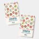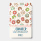 Dê um nome ao crachá com um padrão bonito com rosquinhas que se desmoronam por todo o lado. As cores rosa, verde, castanho e creme realmente dão a esta design uma sensação retrorativa legal.