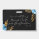 Eu posso fazer todas as coisas Bíblia crachá verso com o verso de bíblia inspiracional de um jardim dos Philippians. KJV Black e White com roteiro moderno. Acentos folhosos florais azuis e dourados acentos de Vikkelynn Christian Gifts & Co.