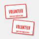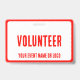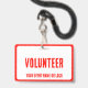 crachá de evento de logotipo corporativo vermelho e branco de voluntários simples