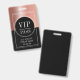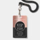 Modelo de crachá de evento VIP de acesso total rose gold metálico e preto. Substitua pelo nome e data do seu evento.Estilo glamoroso e luxuoso.