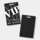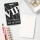 Todos acedam ao Crachá VIP de Fundo Preto Moderno. Perfeito para shows de moda, concertos, conferências, auto-falantes ou qualquer evento especial, este crachá VIP foi projetado para fazer com que os convidados se sintam importantes — inclusive festas de aniversário. Ambos os lados apresentam um fundo preto elegante. A frente mostra "VIP" em branco, exibido na diagonal com um efeito sombra da cinza escura atrás dela, adicionando profundidade. À direita, o nome e a data do evento são posicionados para uma aparência moderna, com "All Access" na parte inferior. O verso também é preto e vazio esquerdo. Totalmente personalizável, você pode ajustar o texto, as fontes e as cores de acordo com o tema do seu evento.