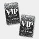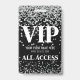 Crachá de Evento VIP com Glitter Silver. Este crachá de evento de na moda é perfeito para 16 festas Doce, Bat Mitzvahs, comemorações da véspera de Ano Novo e muito mais. O design apresenta um fundo preto com um gradiente cintilante prateado a brilhar no topo e no fundo, adicionando um toque festivo e elegante. O mesmo design é impresso em ambos os lados para um aspecto polido. Apresentando fontes serif ousadas misturadas à tipografia limpa, ela fornece espaço para o nome do evento, data e "Todos os acessos passados". O texto é totalmente personalizável e você pode até mesmo alterar a cor de fundo para corresponder ao tema do evento. Este crachá é uma maneira sofisticada de fazer seus convidados se sentirem especiais!