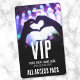 Crachá VIP de Evento Especial com Acesso Total para Ingressos de Concerto. Ótimo para concertos, grandes eventos especiais como conferências, palestrantes e pode até funcionar para uma festa de aniversário. Apresenta uma brincadeira simpática com um local de concerto com alguém fazendo um coração com as mãos. Ao fundo, há uma mistura de cores roxa, azul e branca das luzes do concerto. Na parte inferior, há uma fonte em negrito com VIP, o nome do evento, data e 'Passagem de Acesso Total'. Você pode alterar todas as informações do texto e as cores da fonte deste crachá. Você pode até usar uma foto diferente se quiser, mas talvez não desvaneça para preto tão bem na parte inferior.