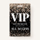 Crachá de Evento VIP com Glitter Dourado. Este elegante crachá de eventos é perfeito para uma variedade de celebrações, incluindo 16 festas doces, Bat Mitzvahs, festas de Ano Novo, e muito mais. A design apresenta um fundo preto com um gradiente de brilho dourado confetti no topo e no fundo, criando um olhar festivo e glamouroso. O mesmo design é impresso em ambos os lados para garantir a consistência. O crachá inclui fontes serif de negrito misturadas com uma simples tipografia, permitindo espaço para o nome do evento, data e "Todos os acessos passados". Você pode personalizar o texto e até mesmo alterar a cor de fundo para corresponder ao tema do evento. Este crachá adiciona um toque de sofisticação e faz seus convidados se sentirem realmente especiais!