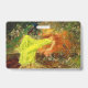 Crachá com a pintura de Arthur Wardle A Fairy Tale (1895). Uma jovem de cabelo comprido veste um vestido amarelo e dorme em uma floresta verde ao lado do veado, coelho e pavão. Um belo presente para amantes de contos de fadas e entusiastas de arte ingleses!