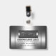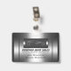 Série metálica: Um crachá de nome de na moda para a sua empresa de vendas automáticas. Excelente para reuniões e shows. Basta carregar seu logotipo ou usar o logotipo prateado fornecido. Então personalize com seus detalhes e dê uma linha de correia ou uma citação para esse sentimento realmente profissional. A design usa elementos metálicos brilhantes, parecidos com peças de motor, para um sentido de esportes, músculos e luxo focados. Junto com o logotipo prateado, o estilo design corresponde ao que seus clientes estão procurando em um automóvel e, portanto, inspira confiança de que você tem o correto para eles. E é um bom momento para personalizares os detalhes - digita-os! Consulte o cartão de visita correspondente ou outros itens do showroom pesquisando o código de design. Código design: tfmptgo1