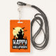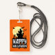 Feliz ilustração do design de texto de Halloween com decoração assombrada de casa, cemitério e morcegos na lua de cheio sobre fundo laranja grunge