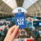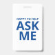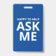 Crachá Feliz em Ajudar Pergunte-me ID Azul e Branco