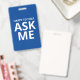 Feliz em Ajudar Pergunte-me Crachá Azul e Branco