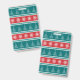 Ilustração de Feliz Natal com árvore de Natal e decoração de flocos de neve em fundo listrado de vermelho, branco, azul e turquesa