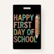 Crachá Feliz primeiro dia de escola de volta à escola