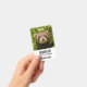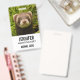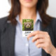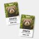 Um crachá com uma fotografia adorável, com um pequeno furão marrom em pé em um capim longo. Que bom!