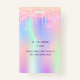 Para uma festa de aniversário Doce 16, 16 (ou qualquer idade). Uma tendência holográfica no fundo do arco-íris é cor rosa, roxo, rosa, verde de menta. Decorado com pingos de brilho sujo, aparência de pingar tinta. Personalize e adicione um nome e 16 anos. Letras cor púrpura. Voltar: detalhes da sua festa.
