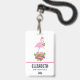 Crachá Flamingo rosa em Santa Hat com Buquê de Cané Adorm