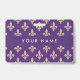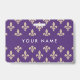 Cartões de visitas elegantes, na moda e sofisticados com creme Fleur-de-Lis em fundo roxo. Design moderno e moderno, perfeito para o amante da carga heráldica.