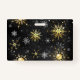 Fundo de Natal preto com flocos de neve de joias douradas e pretas. Flocos de neve ouro. Natal.